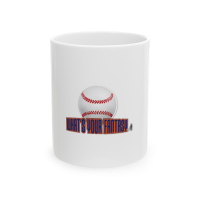 What’s Your Fantasy Blue Orange/Black Trim Baseball Ceramic Mug 11 oz